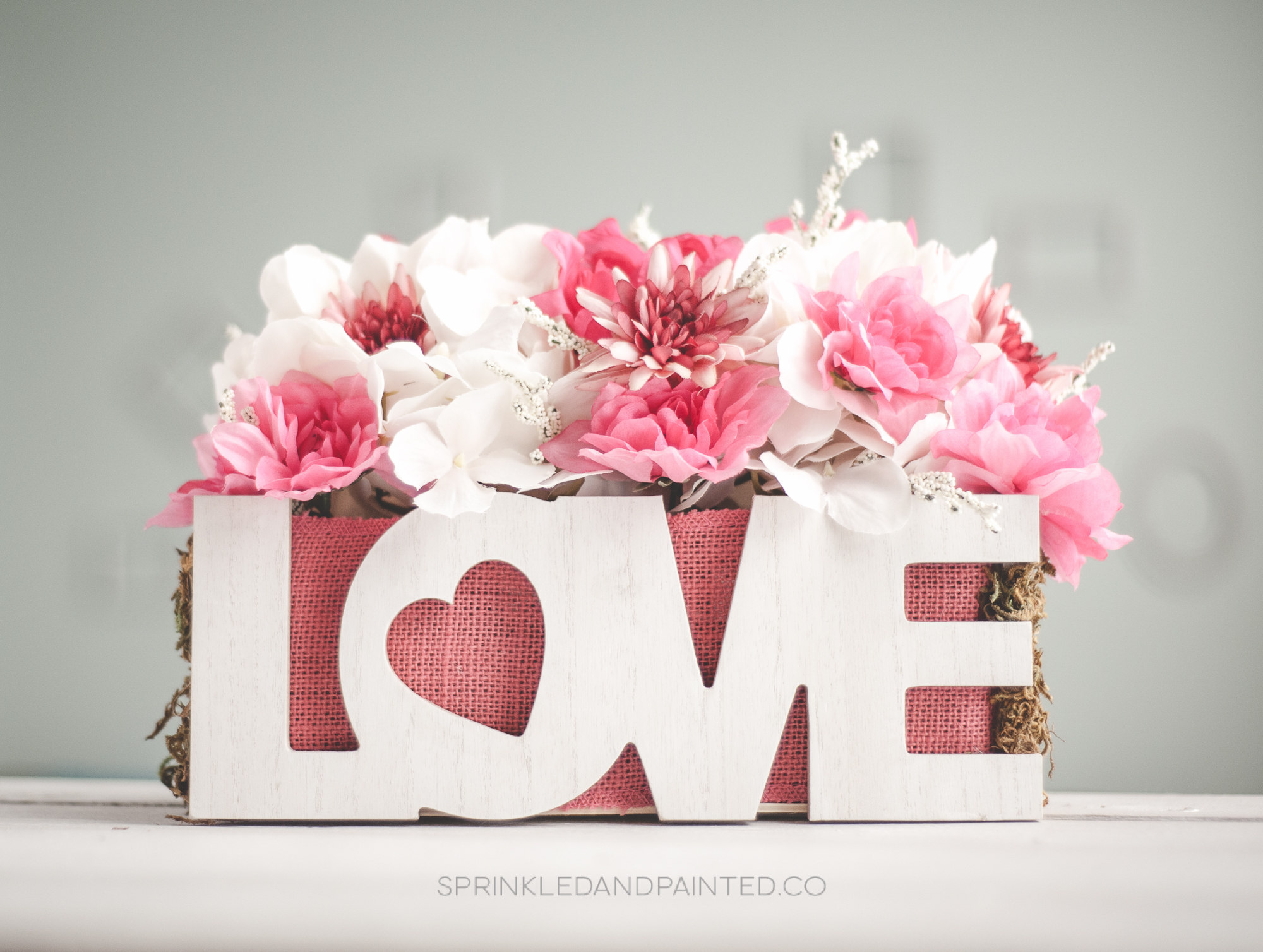 I did the burlap on both Love signs. I then glued together and also added some wood squares for a bottom.
